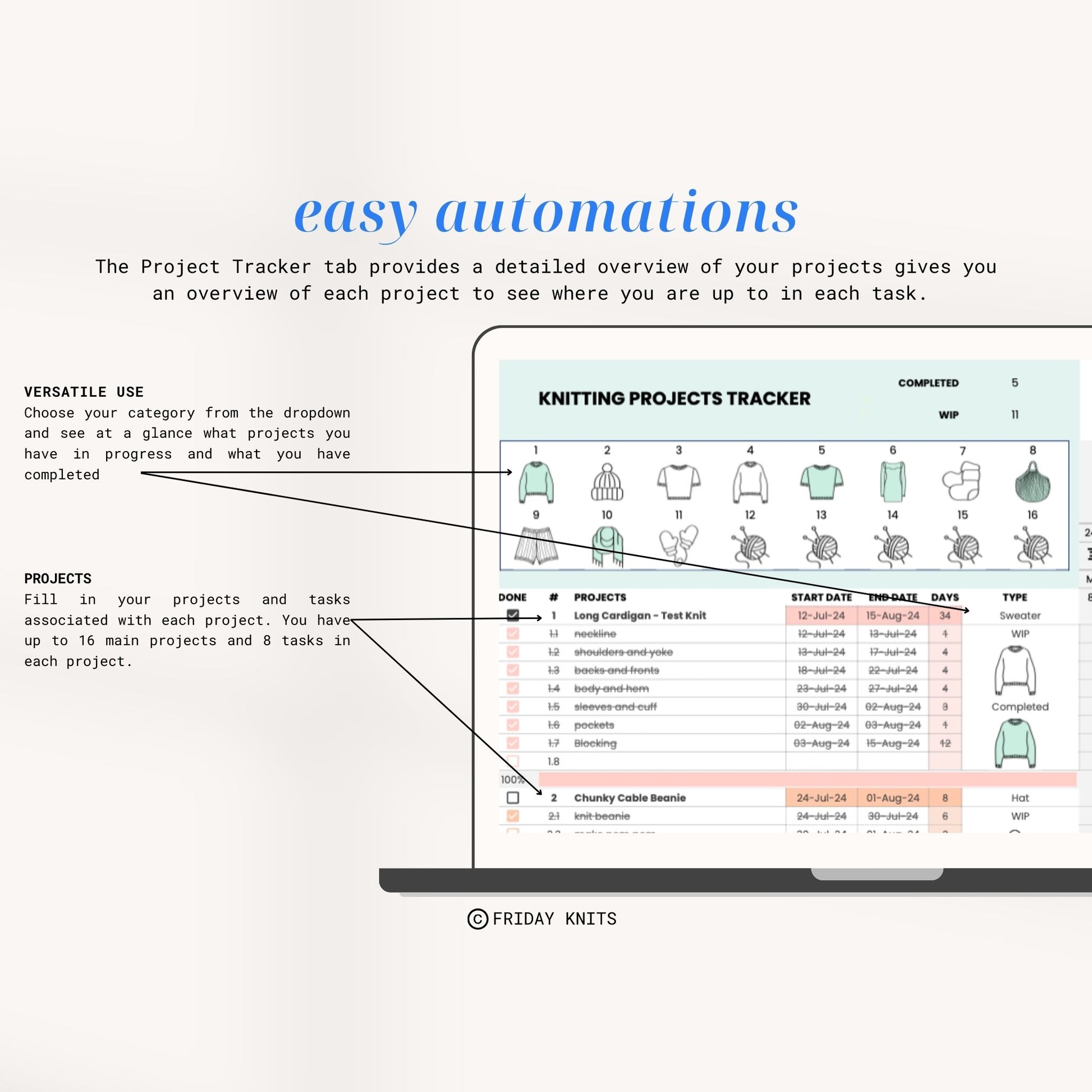Knitting / Crochet Project Tracker Template