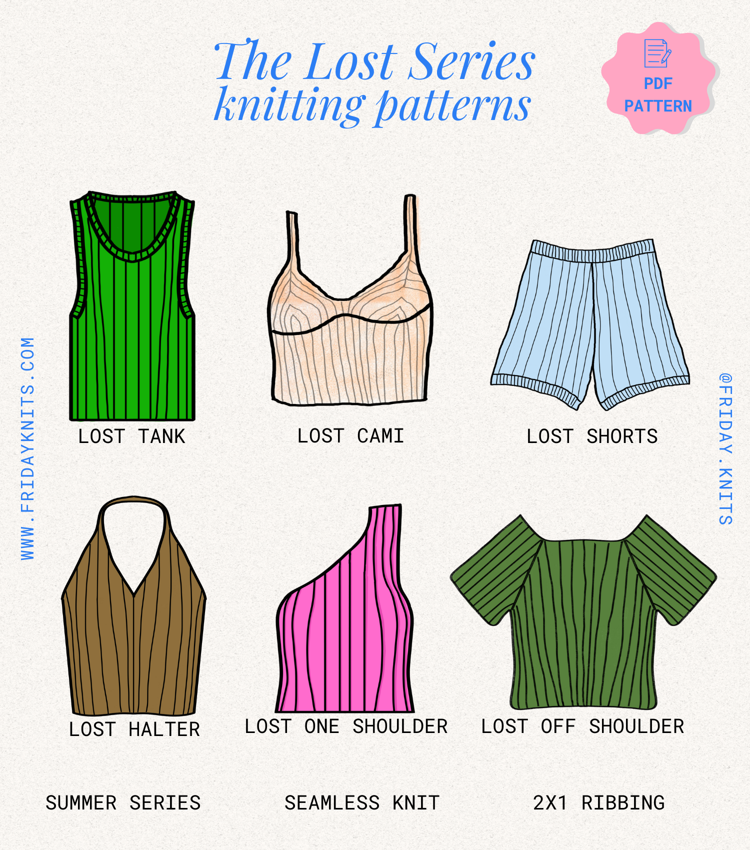 The Lost Shorts is a textured pair of shorts with a retro knit rib. It is the perfect summer knitting pattern, with a creative way to add a handmade touch to your summer wardrobe.. Make a set with other patterns in the Lost Series.